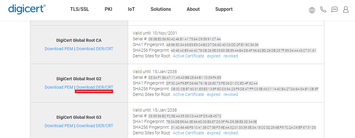 2> DigiCert Global Root G2 (DigiCertGlobalRootG2.crt) / download DER/CRT 다운로드 하세요.