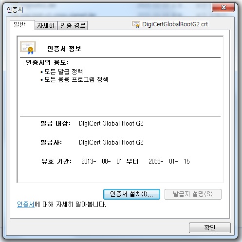 3> DigiCertGlobalRootG2.crt 클릭하시면 실행이 됩니다.