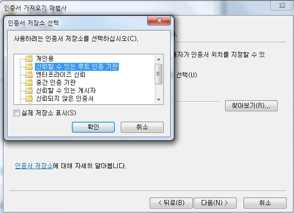 3> 사용자가 선택한 인증서 저장소 선택 / 마침